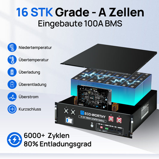 Notstrom-Set 5,12 kWh/10,24 kWh mit 48V 100AH Lithiumbatterie und 5000W All-in-One-Wechselrichter